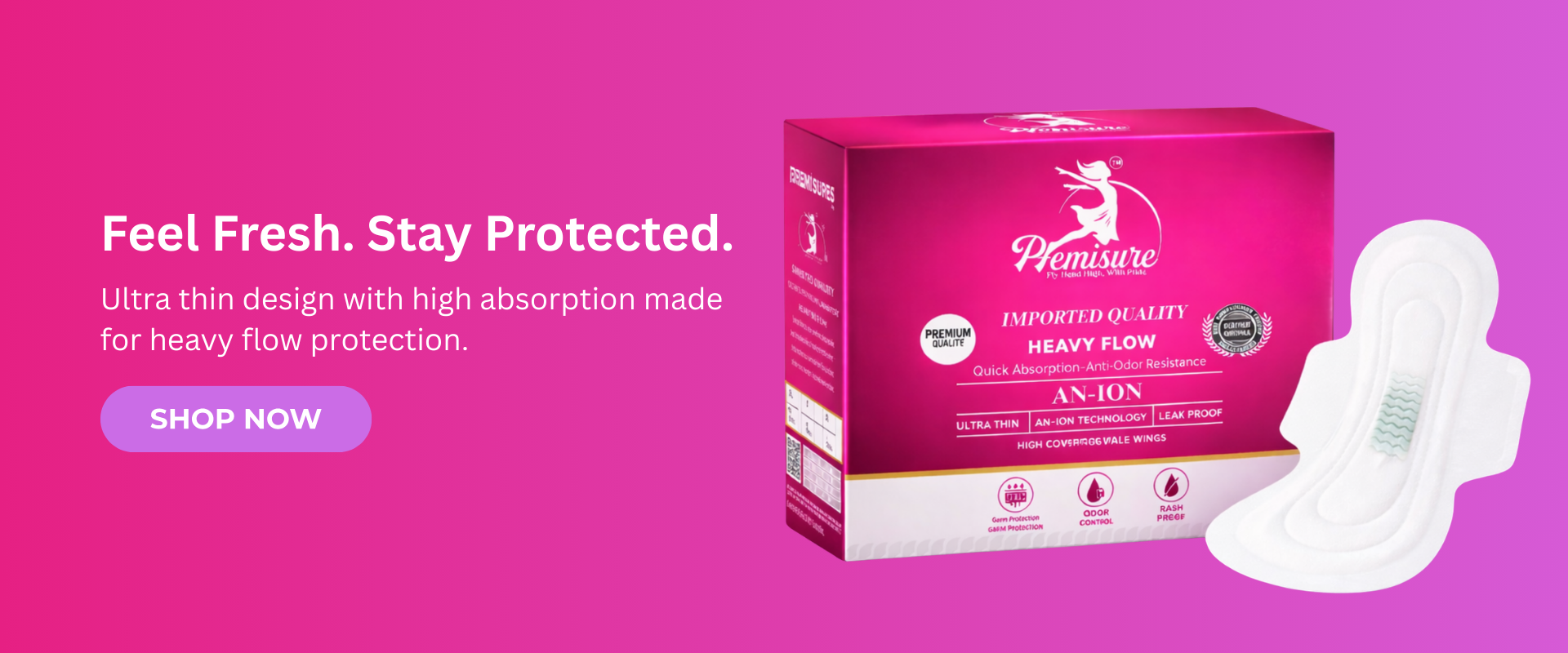 Pfemisure stands ahead with advanced AN-ION technology, superior absorption power, and unmatched comfort designed for modern women. Our products combine premium imported quality, leak-proof protection, odor control, and skin-friendly materials to deliver reliable performance every single time.