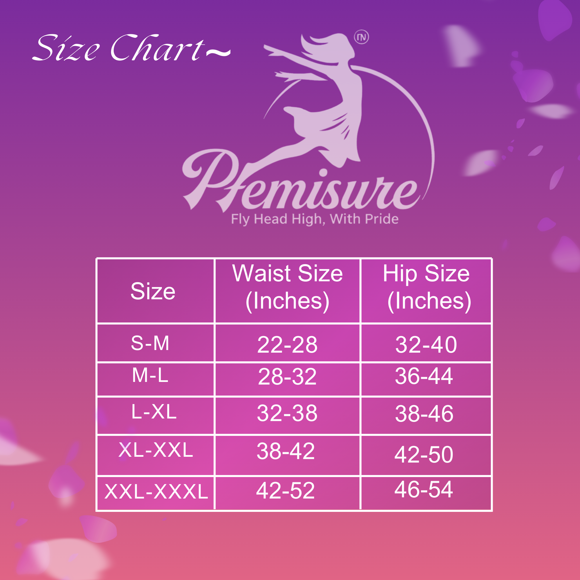 | Size | Waist size (Inches) | Hip size (Inches) |