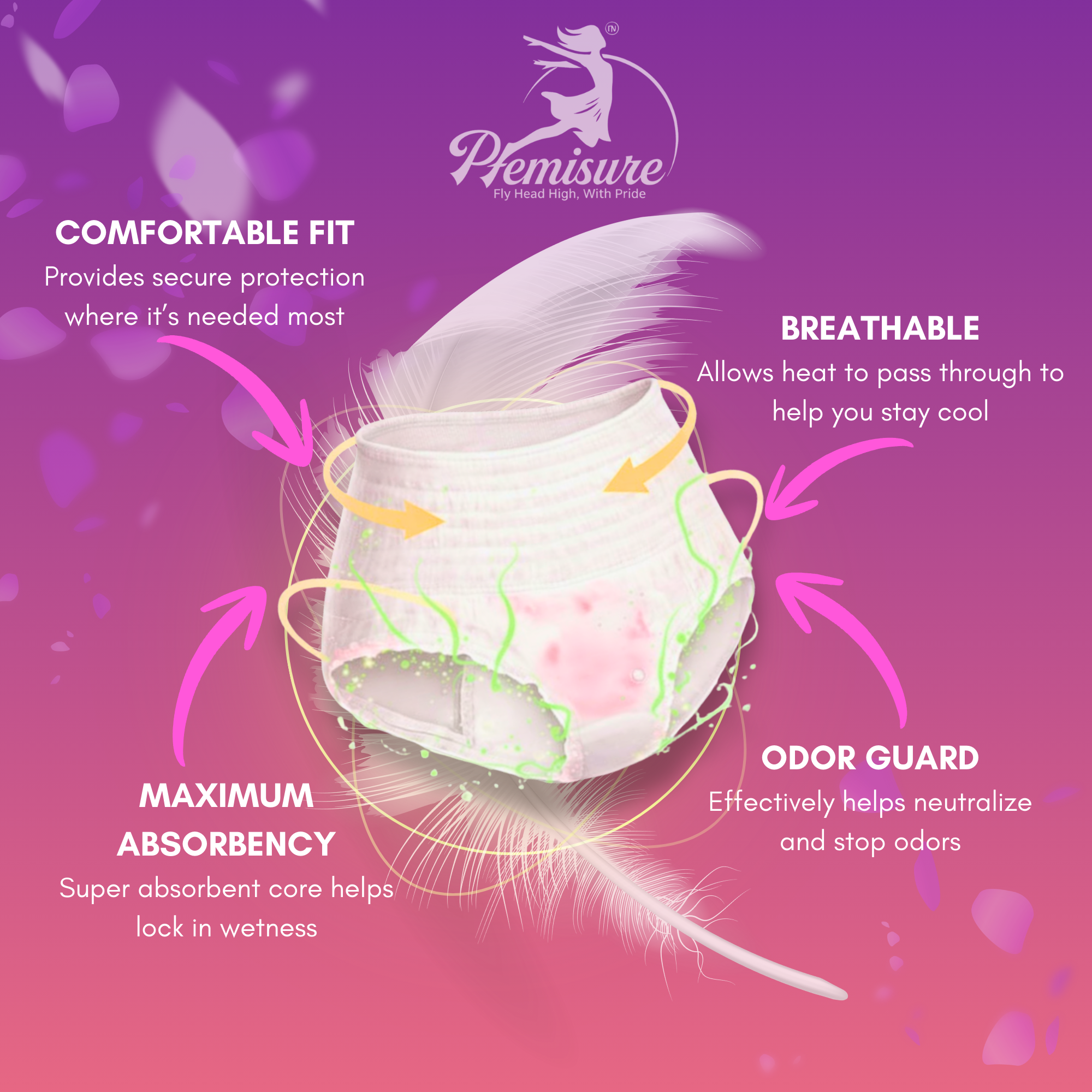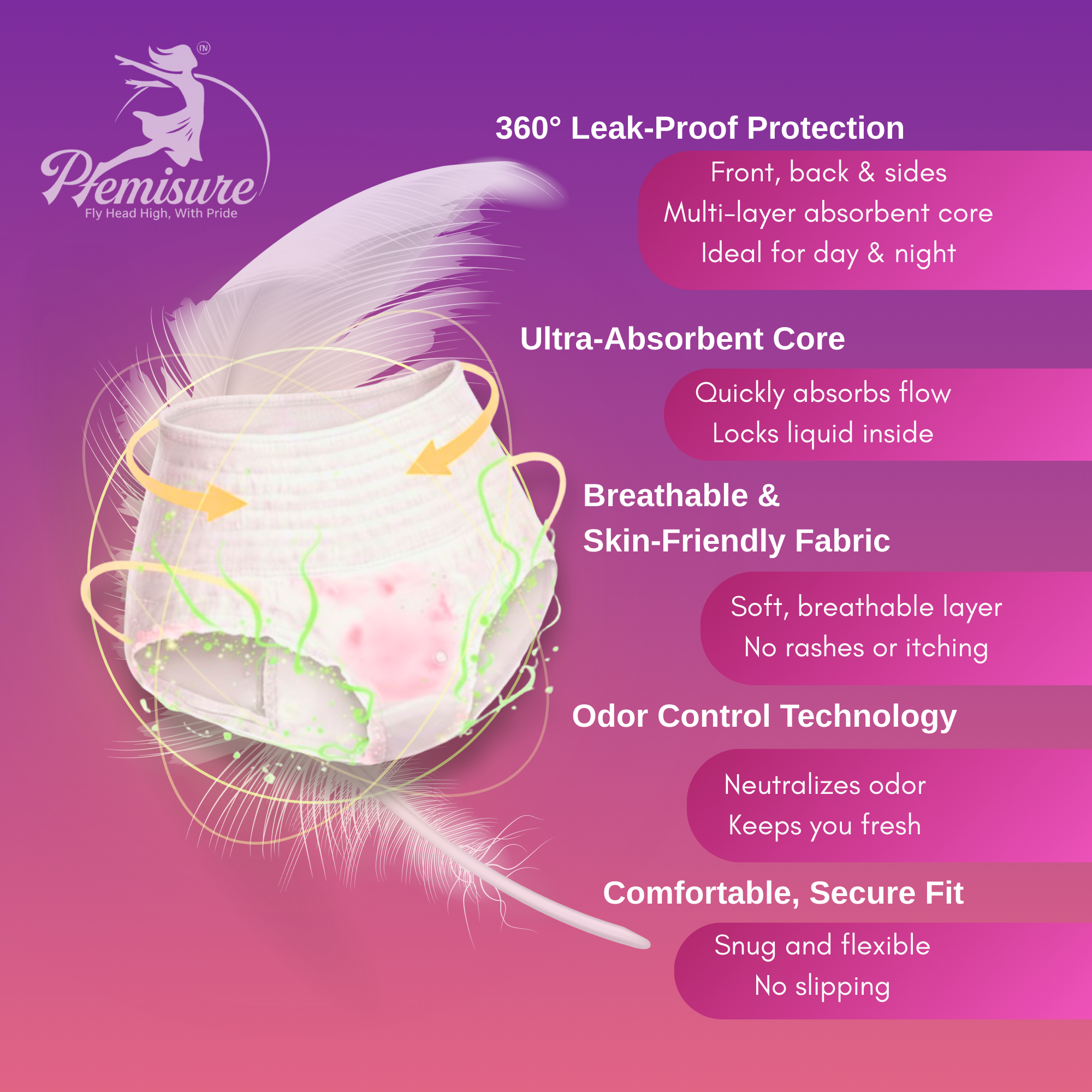 Stay worry-free with Pemisure Ultra Absorb Period Panty, designed for maximum leak protection, odor control, and all-day comfort. Soft, breathable, and highly absorbent for a secure, rash-free experience during heavy flow days.